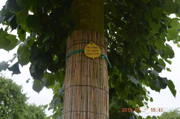 個(gè)別樹木表皮較薄的品種,纏繞葦箔防止樹桿日灼,同時(shí)也防止野生動(dòng)物危害。